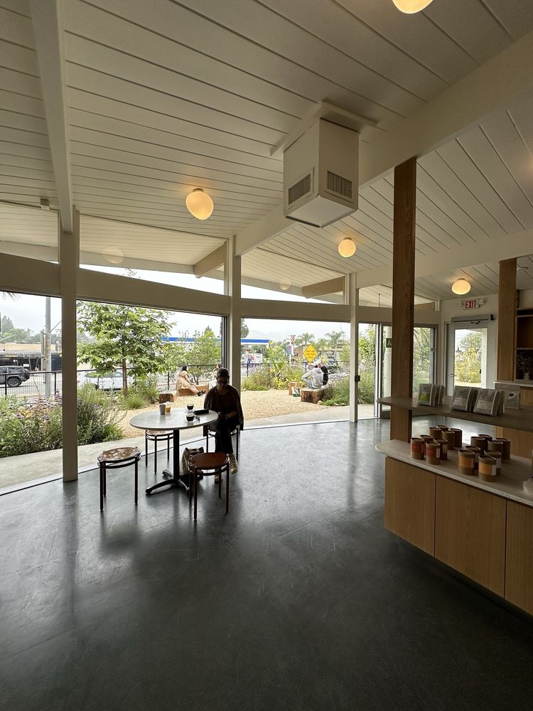 vibe is pretty cool...an old school dry cleaners gutted and opened up to a coffee shop...interiors are quite modern and hip...outside just as fabulous...everything is spaced out and minimalistic...som